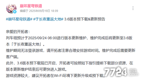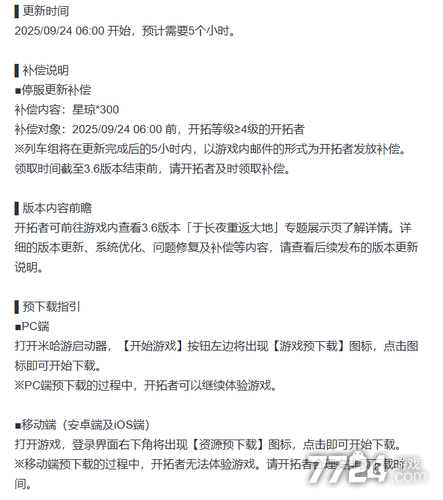 崩坏星穹铁道3.6版本即将开启,目前官方也发布了最新的预下载更新公告,下面我就为大家带来崩坏星穹铁道更新公告关键信息内容,大家可以去快速参考了解。