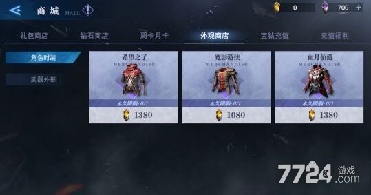 在这里是可以购买希望之子、魔影游侠、血月伯爵,专门的解锁时装外形,玩家就是可以进行限购,最新的时装和套装,在这里激活高级的套装,专门的解锁套装福利。
