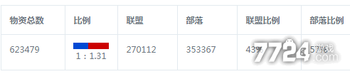 联盟比例为43%,部落比例为57%,而联盟和部落的比例为1:1.31;